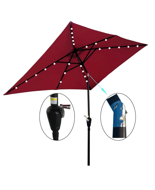 10 x 6.5t Rectangular Patio Solar Led Lighted Outdoor Umbrellas with Crank and Push Button Tilt