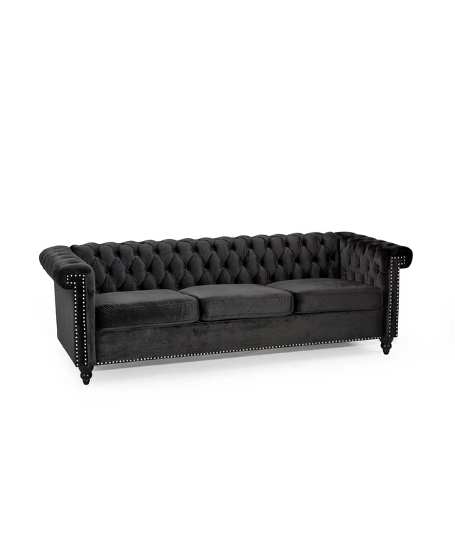 Streamdale 90.6" Velvet Button Tufted Chesterfield Sofa - Black