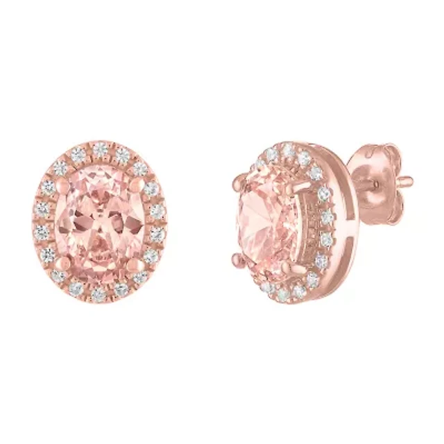 Simulated Pink Morganite 18K Rose Gold Over Silver 11.8mm Stud Earrings