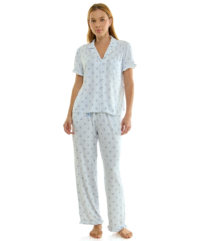 Celebrate twinning style with playful charm in this Sincerely Jules short-sleeve notch-collar top and ruffle-hemmed pants set. Cheerful prints bring a fun, coordinated look that feels easy and stylish for everyday wear.