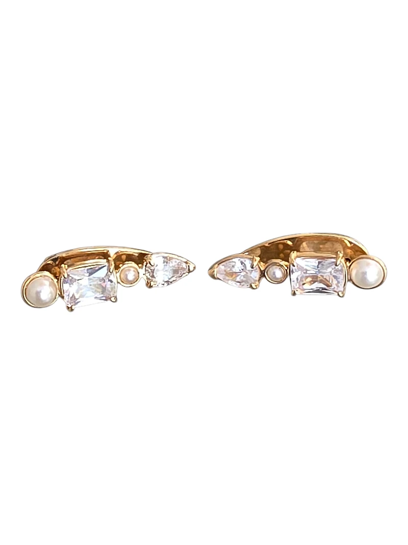Elevate your ear game with the SINTEL crawler earring, crafted from 18K Brazilian goldfilled metal for lasting durability and hypoallergenic wear. This trendy design features lustrous pearls and sparkling zircons that climb gracefully along your ear, blending contemporary style with timeless elegance. Perfect for those seeking a sophisticated accessory that combines comfort with eye-catching glamour, these crawlers deliver a classy statement without compromise.