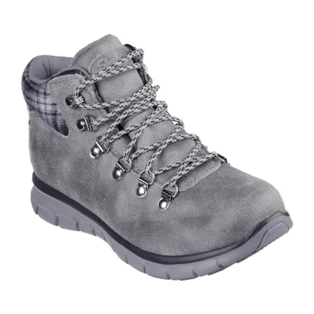 Skechers Womens Synergy Plaid Mood Flat Heel Lace Up Boots