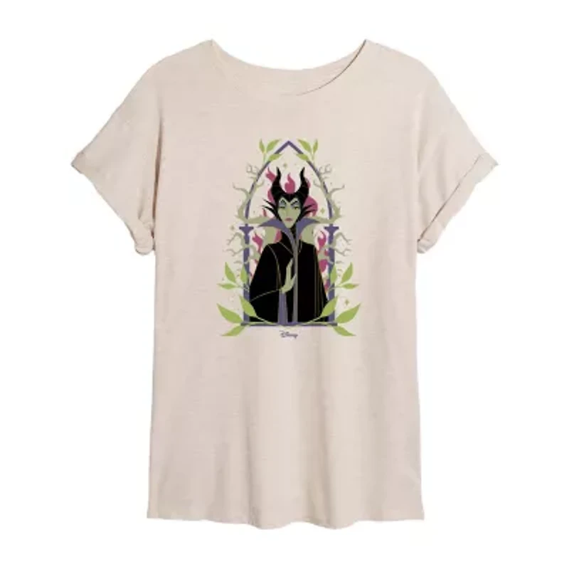 Sleeping Beauty Malificent Tee Womens Juniors Crew Neck Short Sleeve Oversized Maleficent Graphic T-Shirt