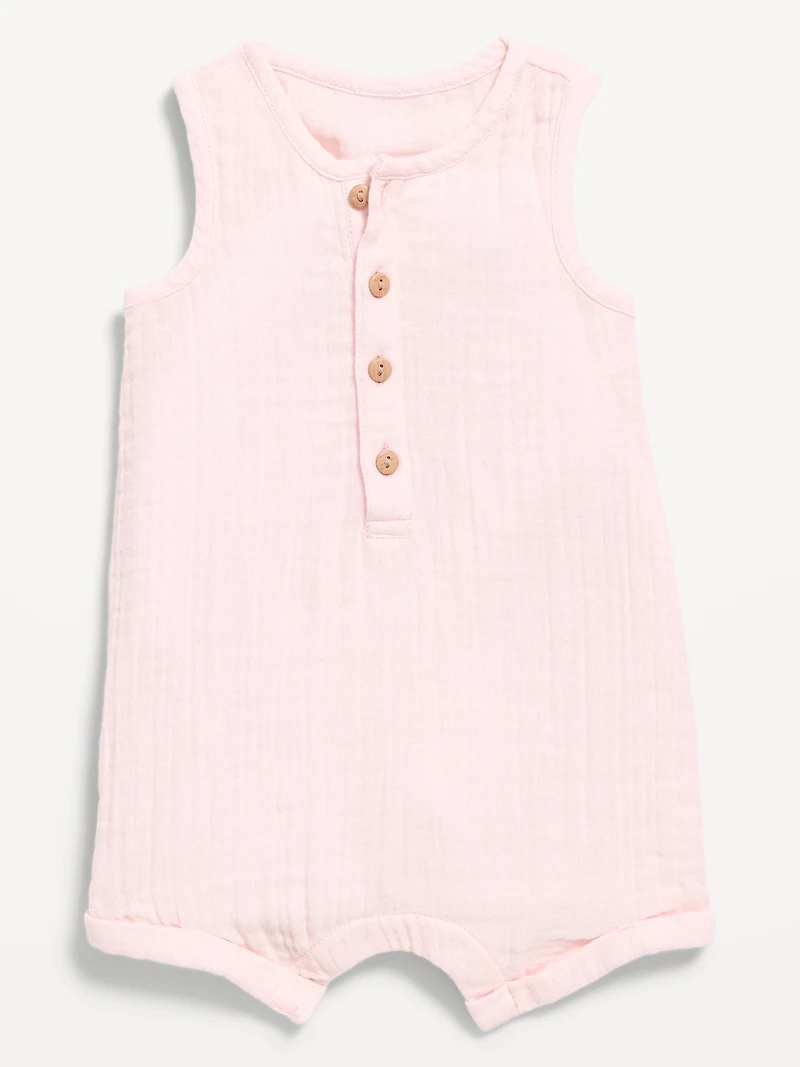 Sleeveless Double-Weave Henley One-Piece Romper for Baby
