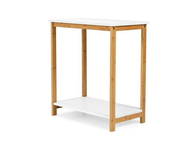 Slickblue 23 Inch Height 2-tier End Table with Bamboo Frame and Bottom Shelf-White