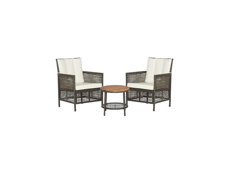 Slickblue 3 Pieces Patio Rattan Furniture Set with Cushioned Sofas and Wood Table Top-White