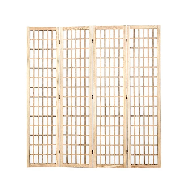 Add elegance and functionality to your space with this folding 4-panel Japanese-style room divider, designed for indoor privacy and decorative appeal. Featuring a traditional grid design with translucent panels, it softly filters light while maintaining separation between areas. The fold-able structure allows easy setup, storage, and repositioning, making it ideal for apartments, studios, or offices. Crafted with a sturdy wooden frame, this privacy screen serves as both a stylish accent and a practical partition for any interior setting.