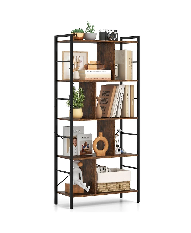 Slickblue 5-tier Bookcase 61 Inch Tall Industrial Bookshelf with Metal Frame
