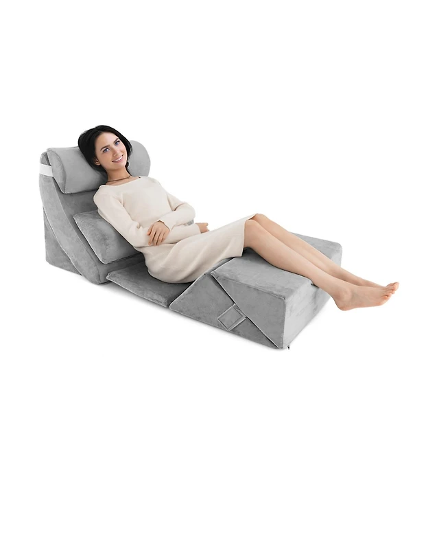 Slickblue 7 Pieces Bed Wedge Pillow Set with Memory Foam and Washable Cover-Gray