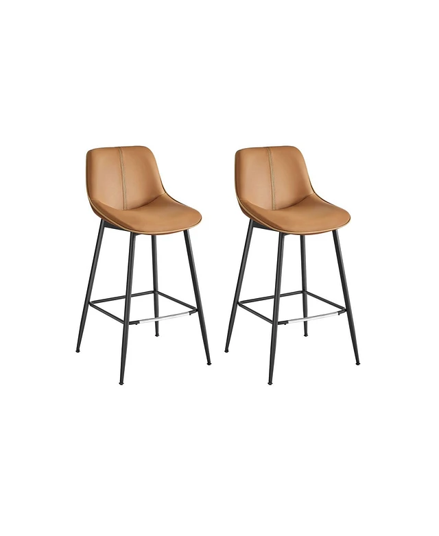Bar Stools Set of 2, Kitchen Bar Stools with Footrest, 25.5 Inches Upholstered Bar Chairs with Back, 2 Counter Height Barstools for Counter Bar