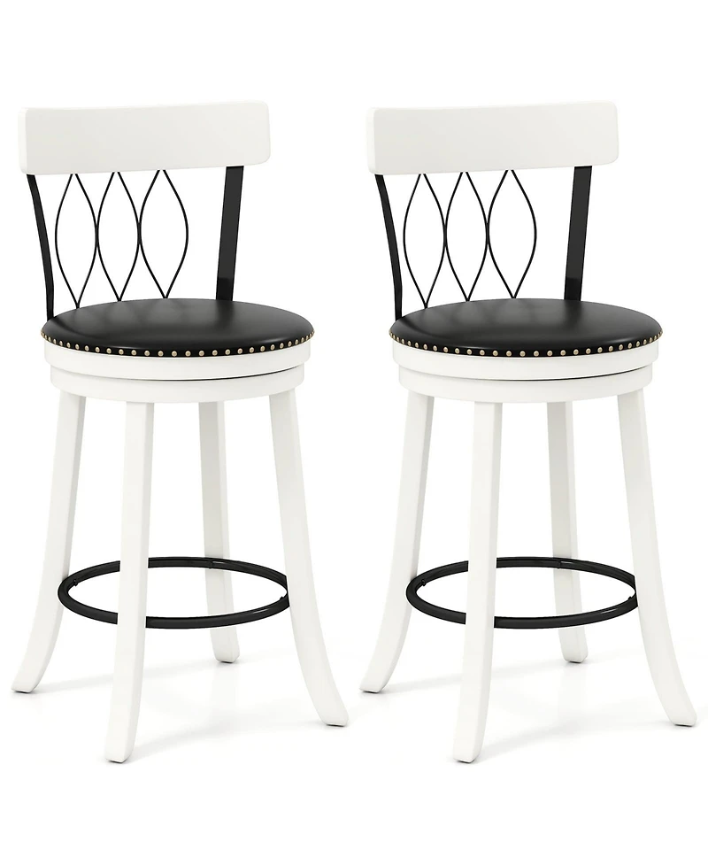 Slickblue Bar Stools Set of 2 Swivel Chairs with Footrest, Wooden Frame and Upholstered Seat