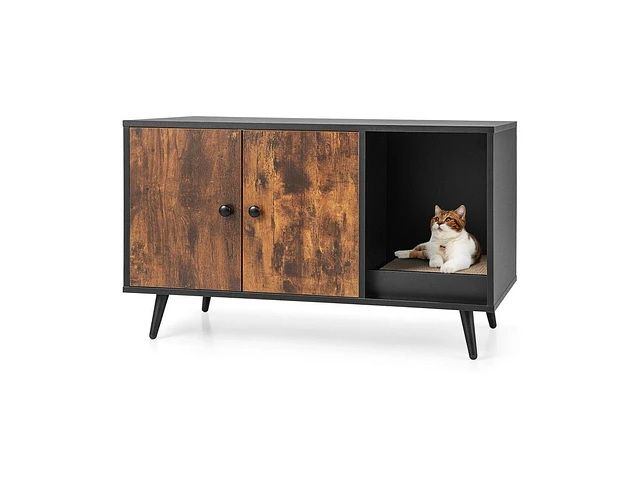 Gymax Cat Litter Box Enclosure w/ Cat Litter Catch Indoor Cat Cabinet for Living Room