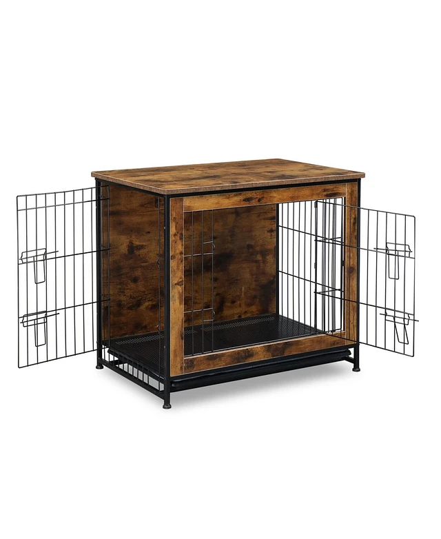 Sugift Industrial Dog Kennel Dog Crate Furniture with Storage Shelves-Rustic Brown