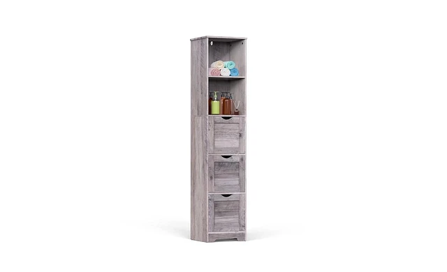 Slickblue Grey Bathroom Floor Cabinet – Tall, Narrow Storage with 3 Drawers, 2 Shelves