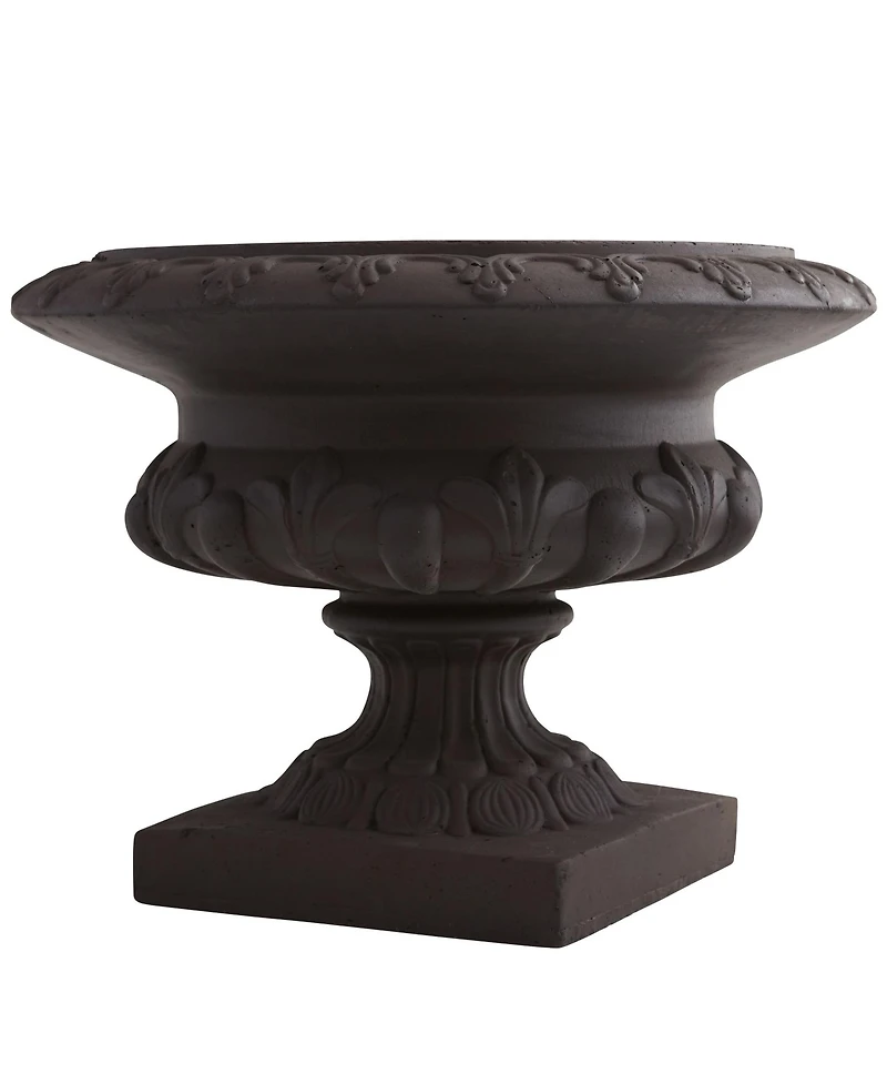 Able to be used indoors and out, this decorative iron colored urn can be a handsome touch. Consider using it as a planter near your entryway for a regal palm or tall agave. Alternatively, this well-made urn could be used in an office or by the fireplace to add a stately air.