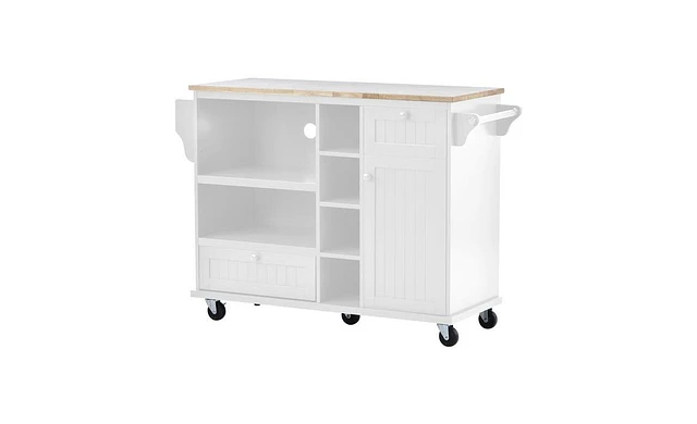 Mobile Kitchen Island Cart with Rubber Wood Top