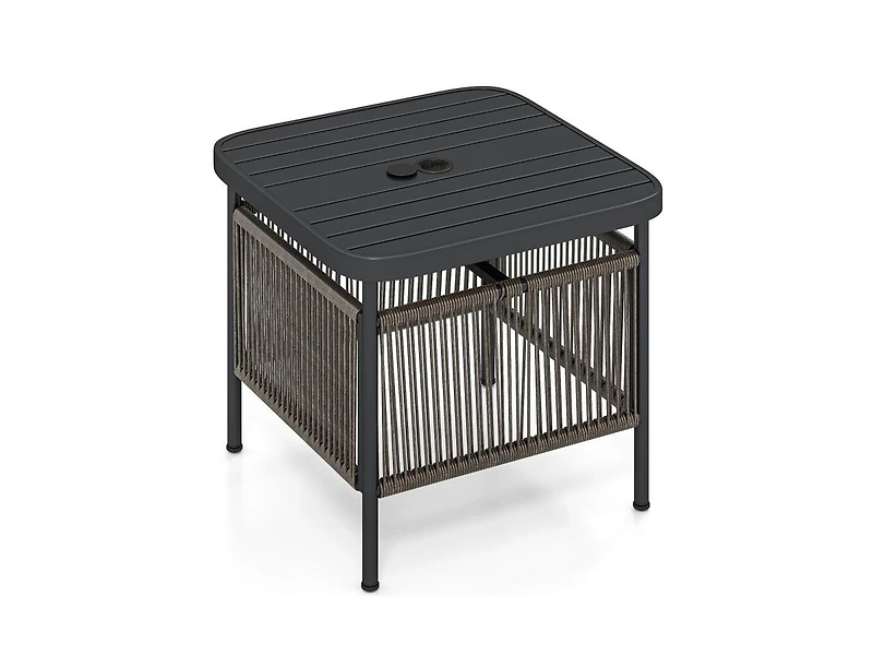 Weather-Resistant Outdoor Table with Umbrella Slot Enhance your outdoor space with this durable, weather-resistant table designed for patios, decks, or garden areas. Crafted to withstand sun, rain, and other outdoor elements, it provides a reliable surface for dining, drinks, or entertaining. The built-in umbrella slot allows for easy installation of a patio umbrella, offering customizable shade for comfort on sunny days. Its sturdy construction ensures stability and long-lasting use, while the clean, versatile design complements a variety of outdoor decor styles. Perfect for casual gatherings or everyday outdoor enjoyment, this table combines functionality with outdoor-ready durability.