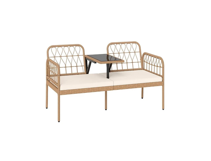 Enhance your outdoor living space with this 2-seat Pe rattan outdoor loveseat featuring a built-in coffee table and soft cushions for comfort and convenience. The durable Pe wicker construction offers weather-resistant performance and a modern woven design, while the integrated coffee table provides a practical surface for drinks, snacks, or decorative items. Soft, supportive cushions add extra comfort for lounging and relaxation. Ideal for patios, balconies, or garden corners, this loveseat combines stylish design, functionality, and comfort for a cozy and inviting outdoor seating area.