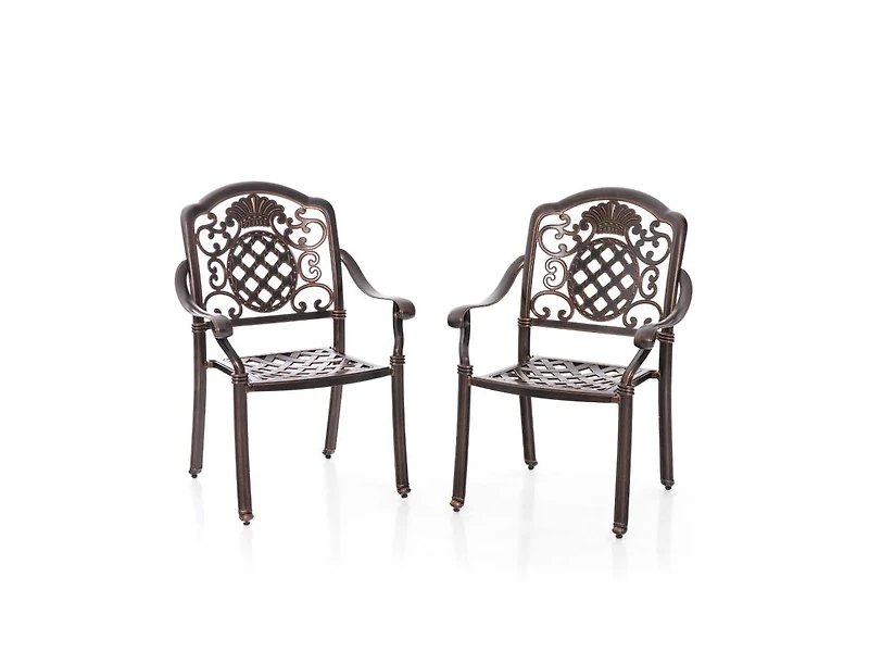 Slickblue Patio Cast Aluminum Dining Chairs Set of 2 Metal Armchairs Stackable-Copper