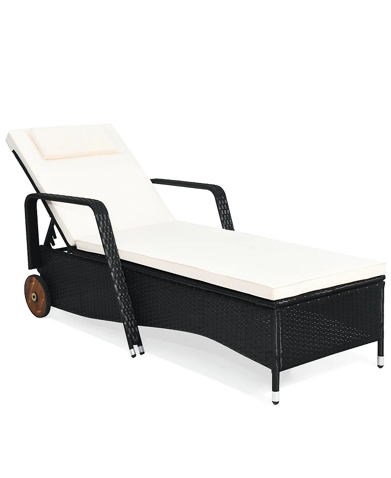 Slickblue Reclining Outdoor Rattan Lounge Chair with Adjustable Back and Wheels