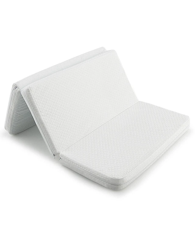 Slickblue Toddler Tri-fold Pack and Play Mattress Topper Mattress Pad with Carrying Bag-White
