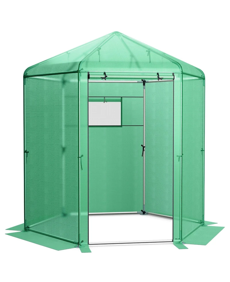 Slickblue Walk-In Hexagonal Greenhouse with Pe Cover and Metal Frame in San Juan, PR