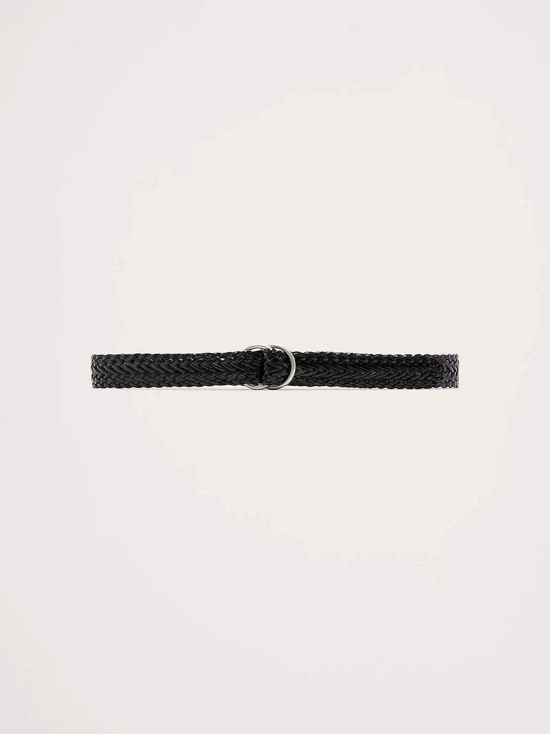 We love a braided belt. This one is braided from slim strips of sturdy and soft leather. Pairs well with denim, chinos, and long weekends. Width: 1. 5"