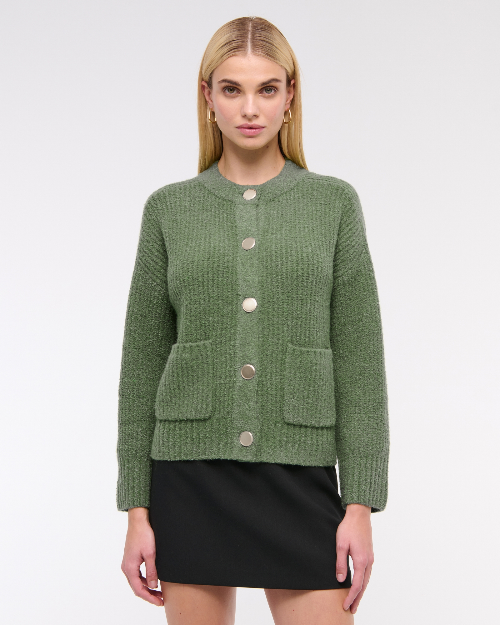 Textural 1-Button Cardigan