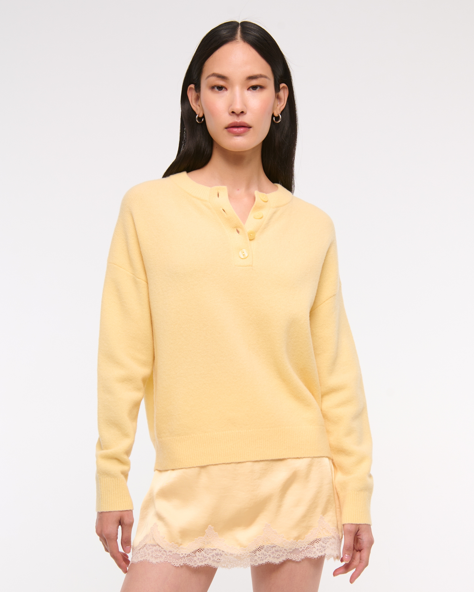 Long-Sleeve Cozy Lounge Knit Oversized Henley Top