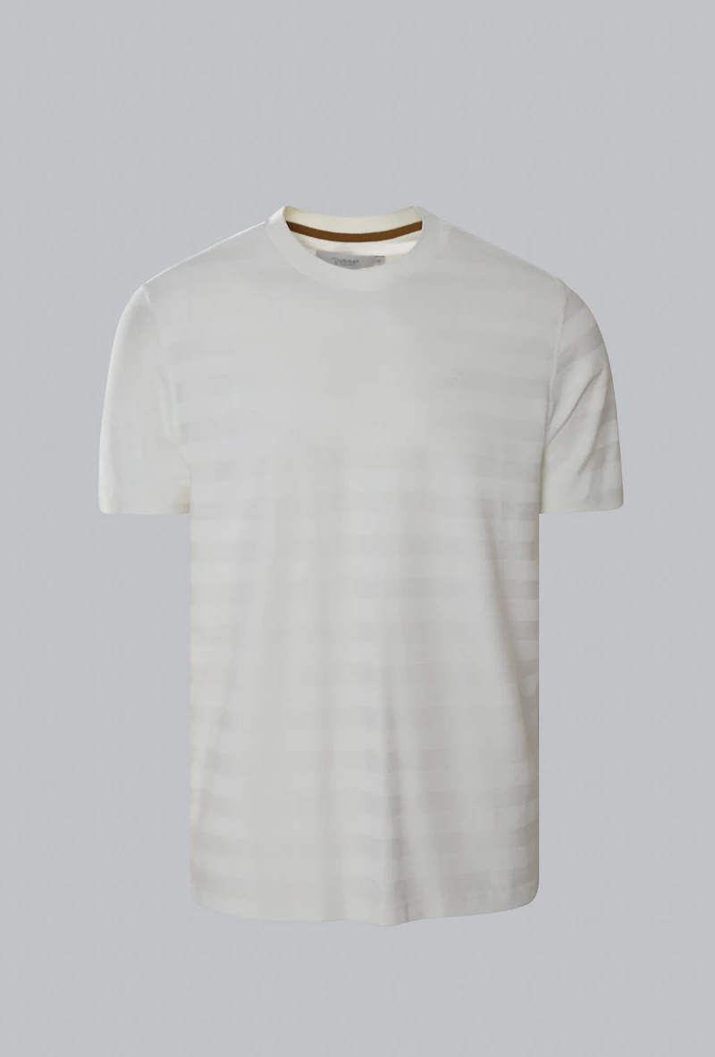 Soft stripe t-shirt in a soft cotton blend with stretch. Lightweight, breathable, and designed for a clean, elevated everyday look.