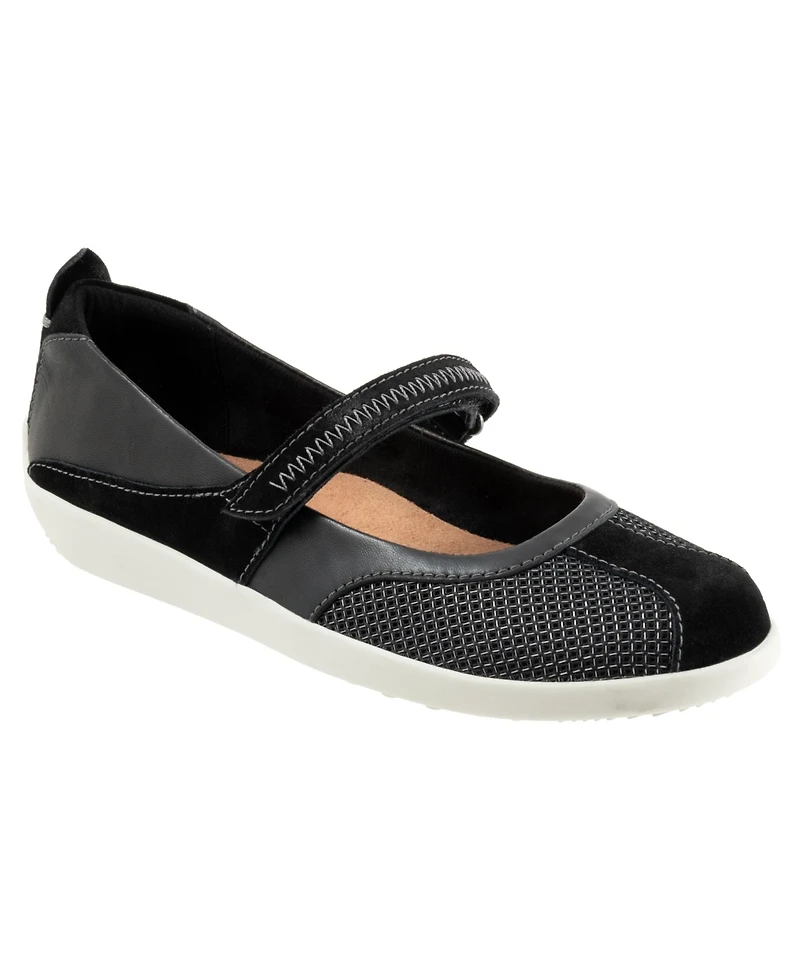 Step into effortless comfort and timeless style with the Softwalk Dayton Mary Jane. Perfectly designed for women on the go, this versatile shoe blends classic charm with modern functionality. The hook-and-loop fastening strap ensures a secure and adjustable fit, making it a breeze to slip on and off. Featuring a breathable mesh upper, soft suede accents, and a cushioned footbed, these Mary Janes keep your feet feeling fresh and comfortable all day. The lightweight sole provides stability and durability, making them your go-to choice for casual elegance. Whether you're running errands or enjoying a leisurely day, the Dayton offers unmatched support and flexibility.