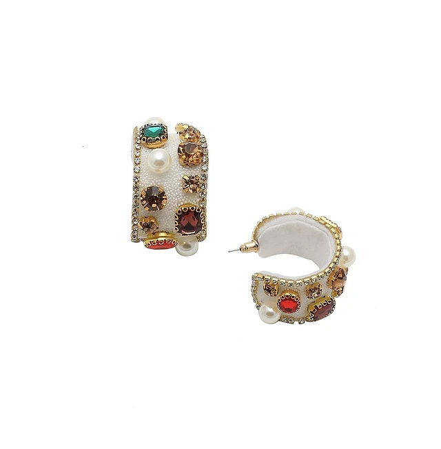 Sohi Women's Asymmetrical Pearl Hoop Earrings