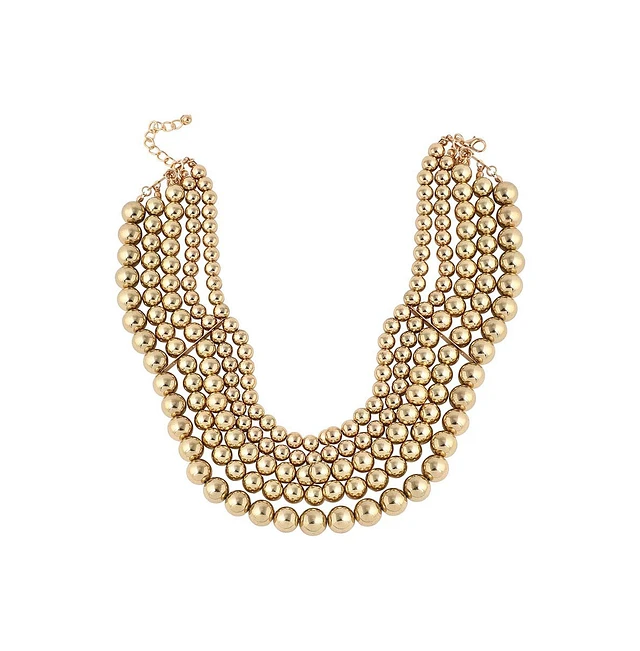 Sohi Women's Gold Metallic Beaded Cluster Necklace