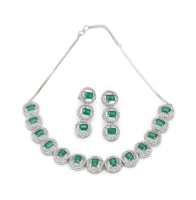 Sohi Women's Green Crystal Bling Necklace And Earrings (Set Of 2