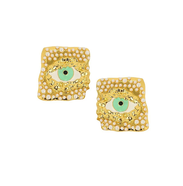 Sohi Women's The Dented Evil Eye Drop Earrings