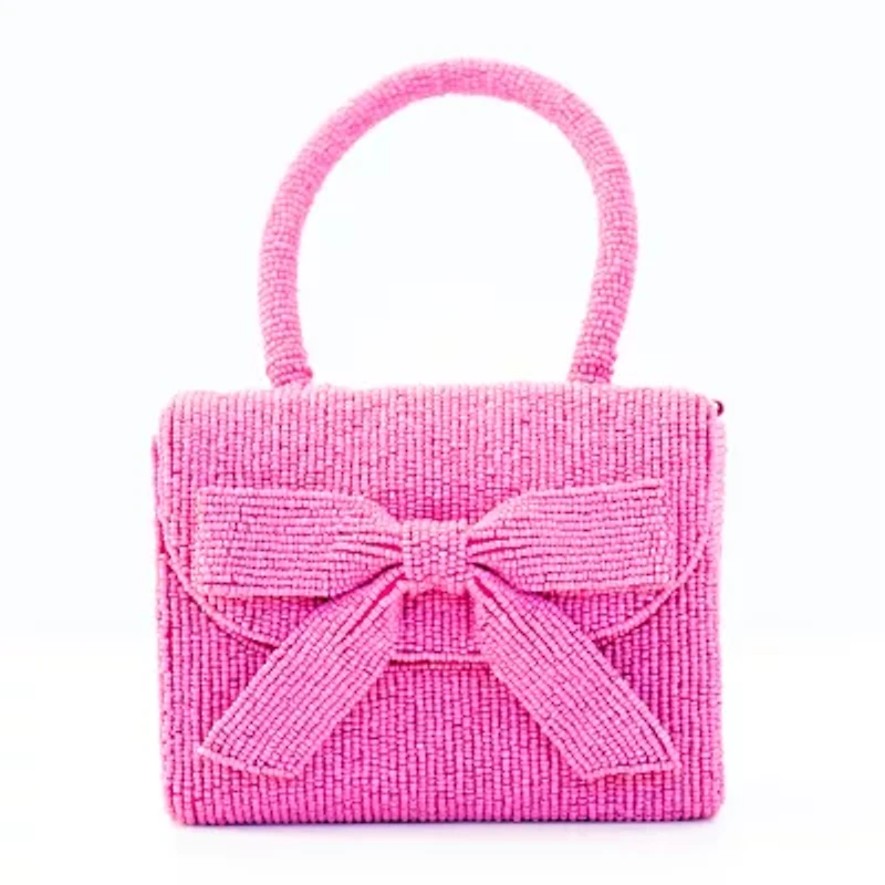 The Sol & Mer bow evening bag shines with all-over bead embellishment and a decorative bow for standout, dressy style. It features a magnetic closure to keep essentials secure in a compact silhouette. Perfect for weddings, parties, or special nights out.