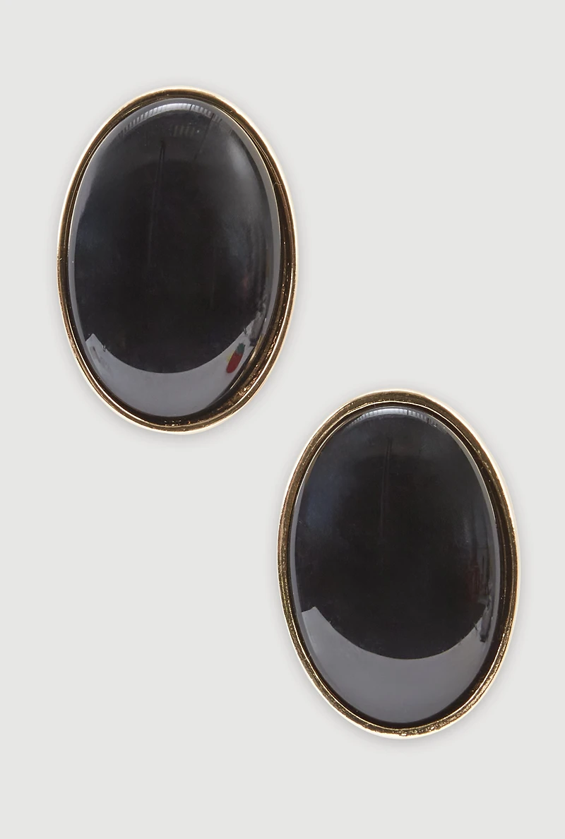 These oval-shaped statement earrings bring a bold touch to any look with their sleek silhouette and polished finish. Designed with a secure post and push-back closure, they offer easy wear and lasting hold for everyday style or special occasions.