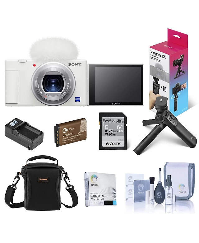 Sony Zv-1 Compact 4K Hd Digital Camera, White Bundle with Sony Shooting Grip/Tripod, 64GB Uhs-ii Sd Card, Shoulder Bag, Extra Battery, Smart Charger a
