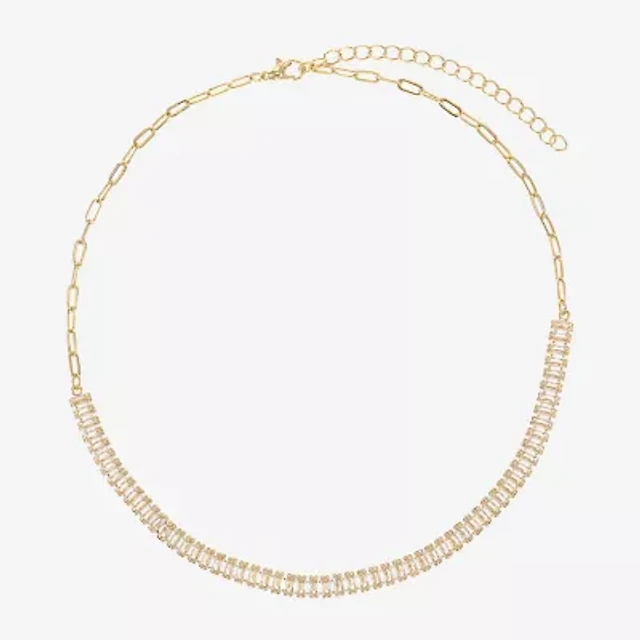 Sparkle Allure Baguette Womens Cubic Zirconia 14K Gold Over Brass 16 Inch Tennis Necklace