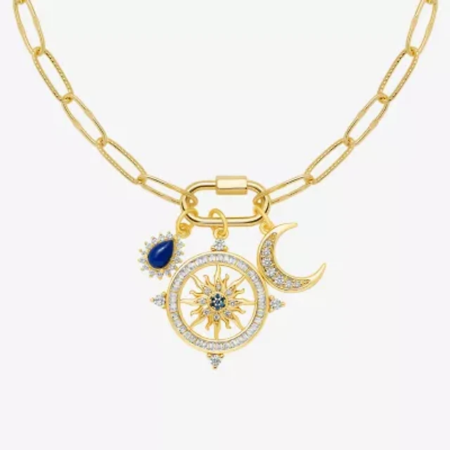 Sparkle Allure Carabiner Charm Womens Blue Cubic Zirconia 14K Gold Over Brass Moon Paperclip Sunburst 18 Inch Pendant Necklace