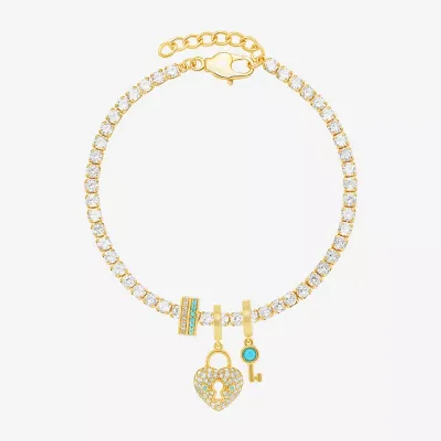 Sparkle Allure Charm Womens Turquoise Cubic Zirconia 14K Gold Over Brass Heart 8 1/2 Inch Tennis Bracelet