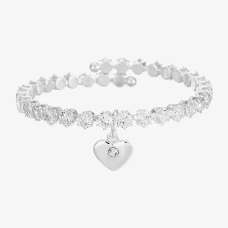 Sparkle Allure Coil Womens Cubic Zirconia Pure Silver Over Brass Heart Tennis Bracelet
