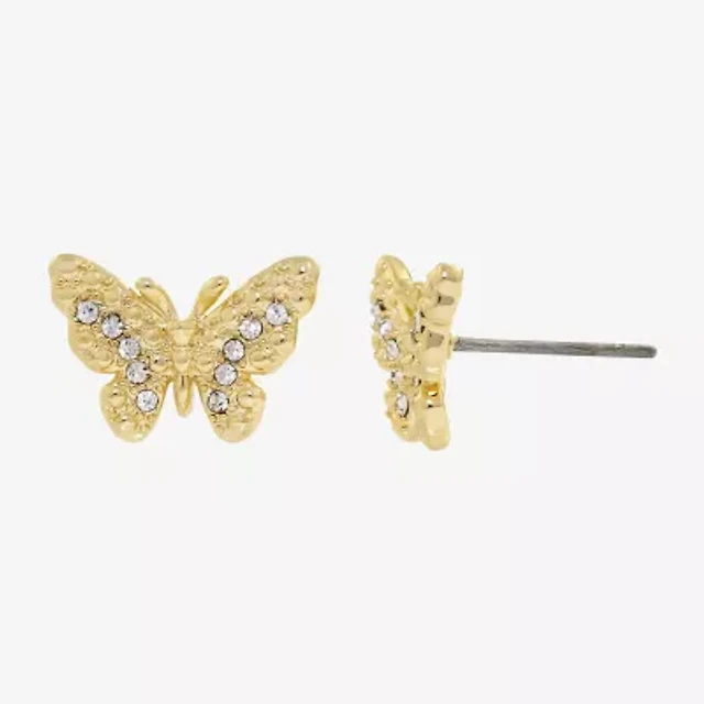 Sparkle Allure Crystal 14K Gold Over Brass 6mm Butterfly Stud Earrings