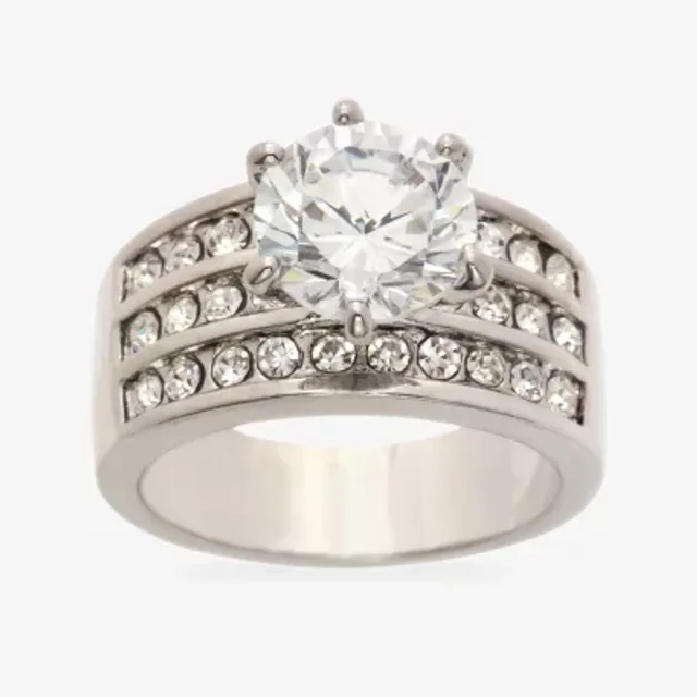 Sparkle Allure Crystal Pure Silver Over Brass Engagement Ring