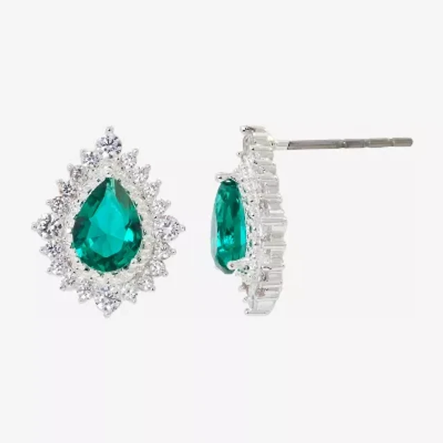 Sparkle Allure Womens Green Crystal 2 Pair Earring Set