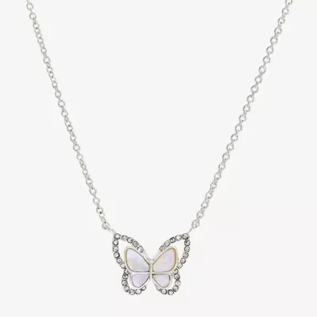 Sparkle Allure Halo Womens White Mother Of Pearl Cultured Freshwater Pearl Pure Silver Over Brass Butterfly 16 Inch Pendant Necklace