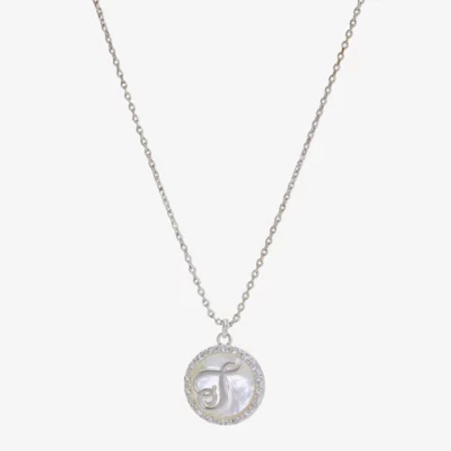 Sparkle Allure Initial Womens Cubic Zirconia Pure Silver Over Brass Round 16 Inch Pendant Necklace