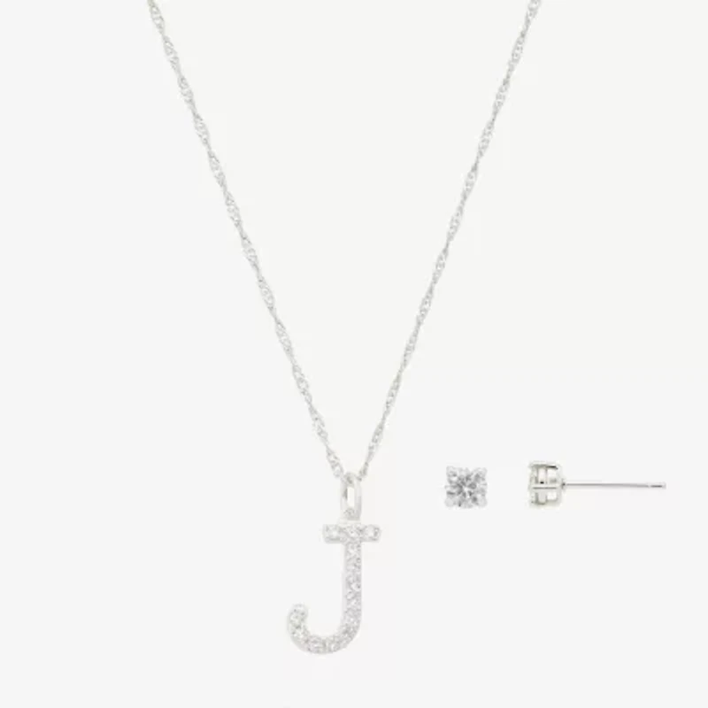 Sparkle Allure Initial Womens Cubic Zirconia Pure Silver Over Brass Round 2-pc. Jewelry Set