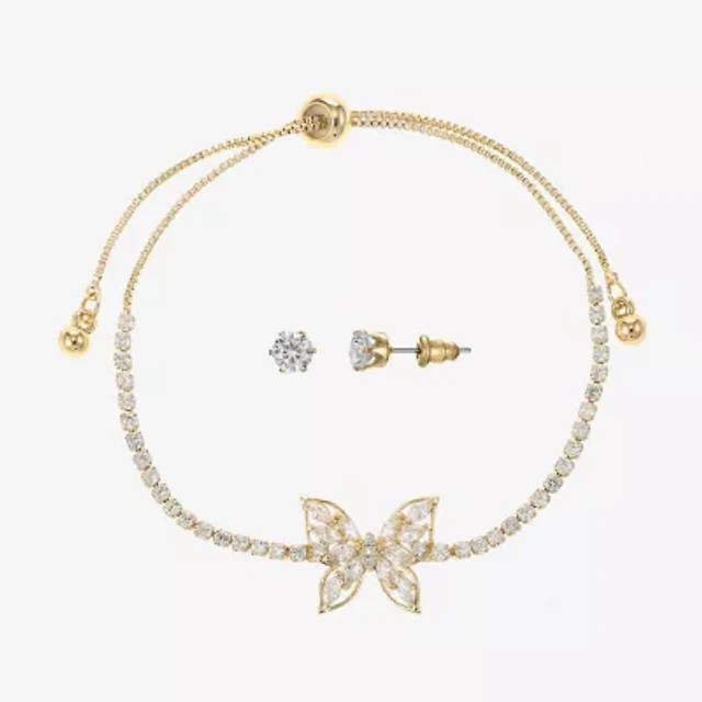Sparkle Allure Pave Womens Cubic Zirconia 14K Gold Over Brass Butterfly 2-pc. Jewelry Set