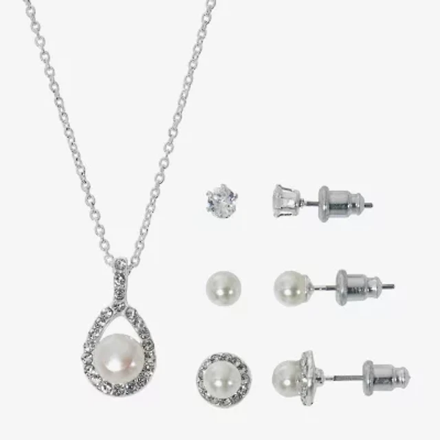 Sparkle Allure Light Up Box Womens Cubic Zirconia Simulated Pearl Pure Silver Over Brass Oval 2-pc. Jewelry Set